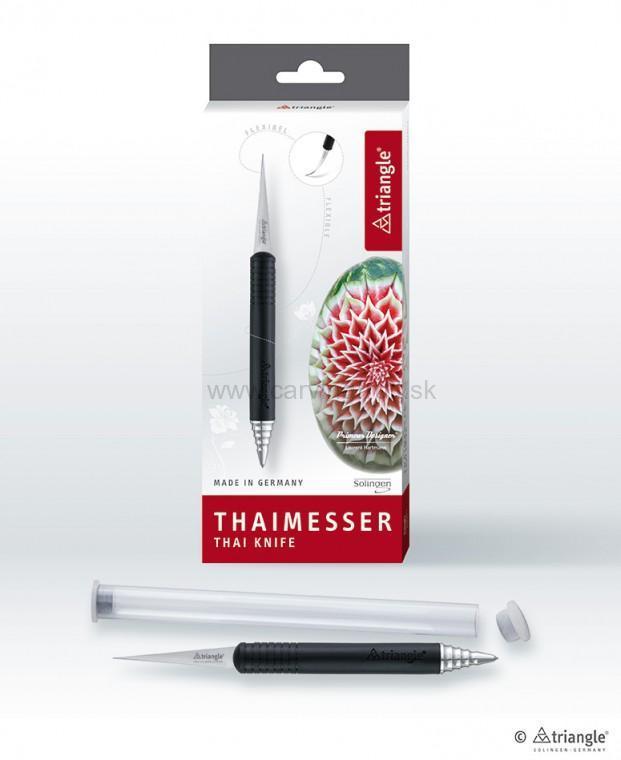 Thajský nôž Triangle, základná pomôcka k vyrezávaniu, má nylonovú rúčku a je vyrobený v Nemecku.